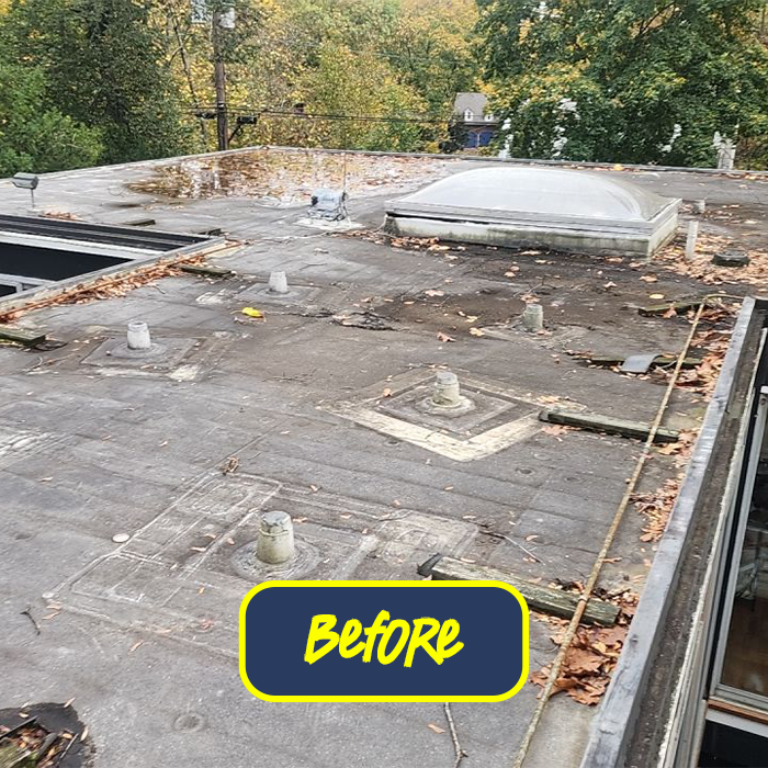 A comprehensive roof restoration was performed on a large contemporary property on Carter Rd, West Orange, NJ, in Essex County. The project commenced with the removal of existing river stones from the deteriorated EPDM roofing system. Necessary repairs were made utilizing Johns Manville EPDM accessories to establish a watertight seal. To prepare the roof surface for the subsequent coating application, a thorough cleaning process was implemented, involving two passes with a medium-pressure power washer to ensure optimal adhesion. The roof was then primed for the application of a Roof Xtender Silicone Coating System.
